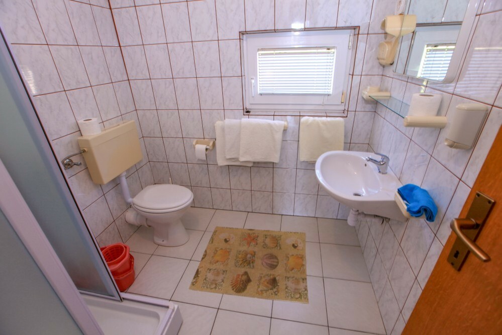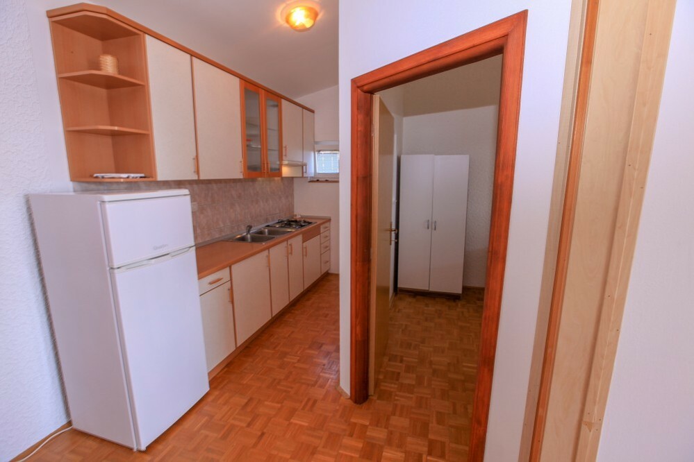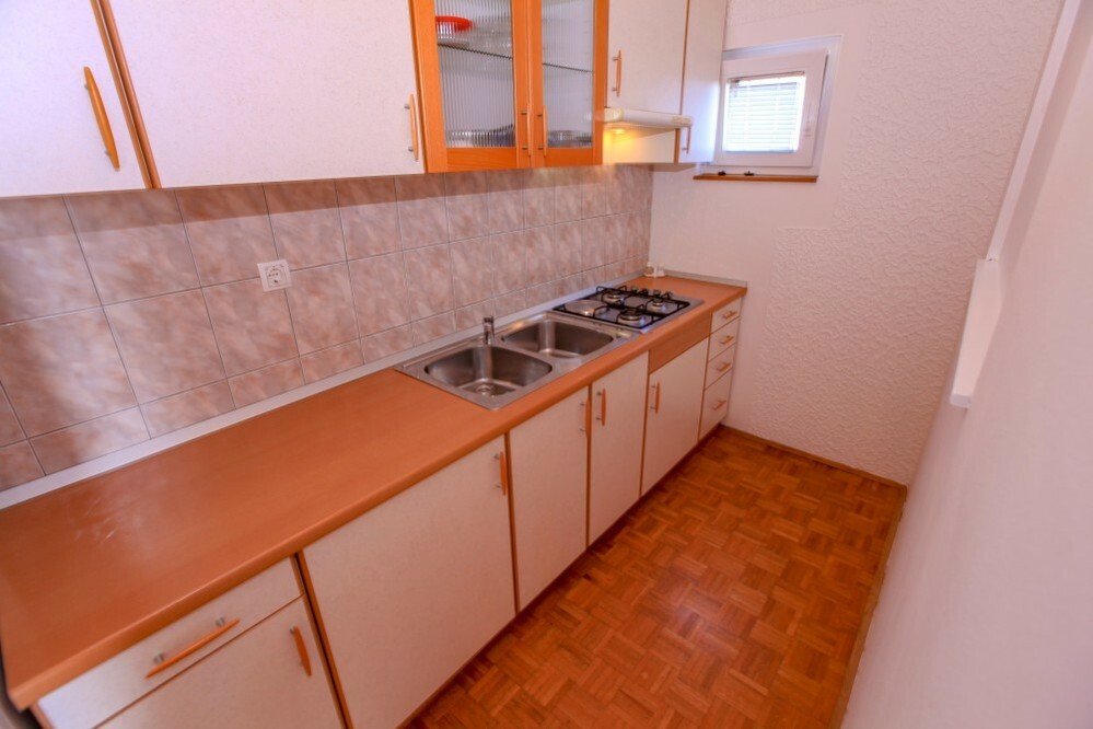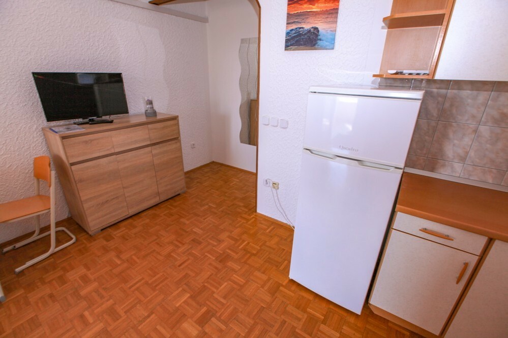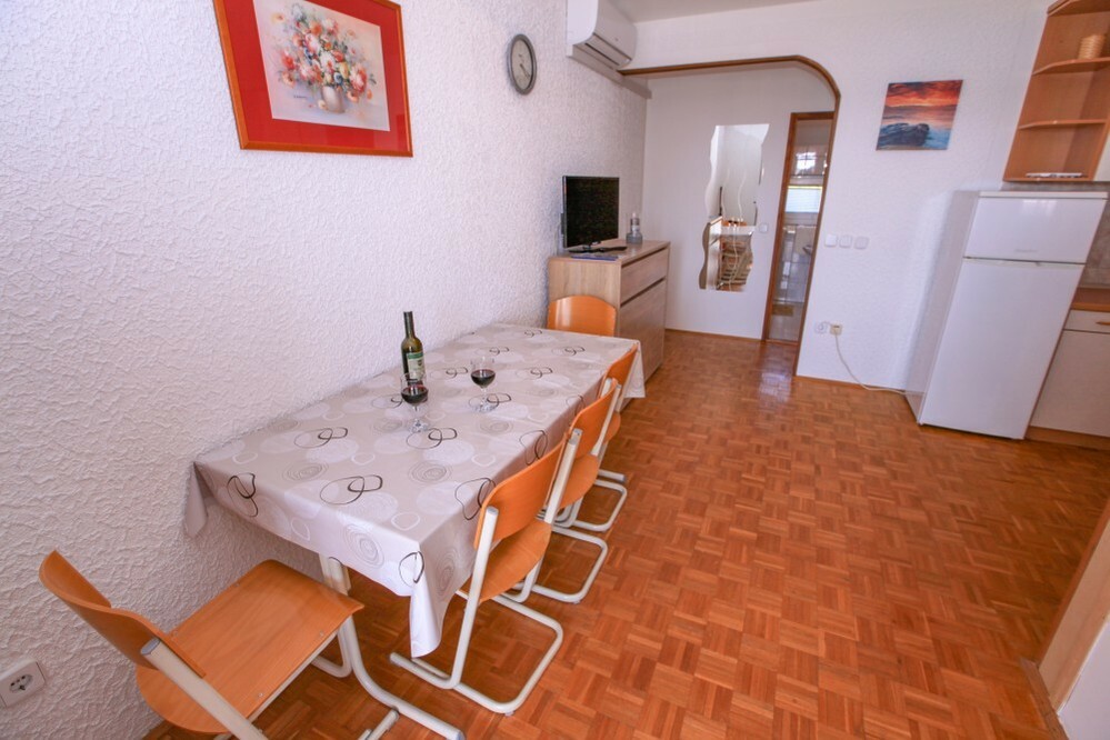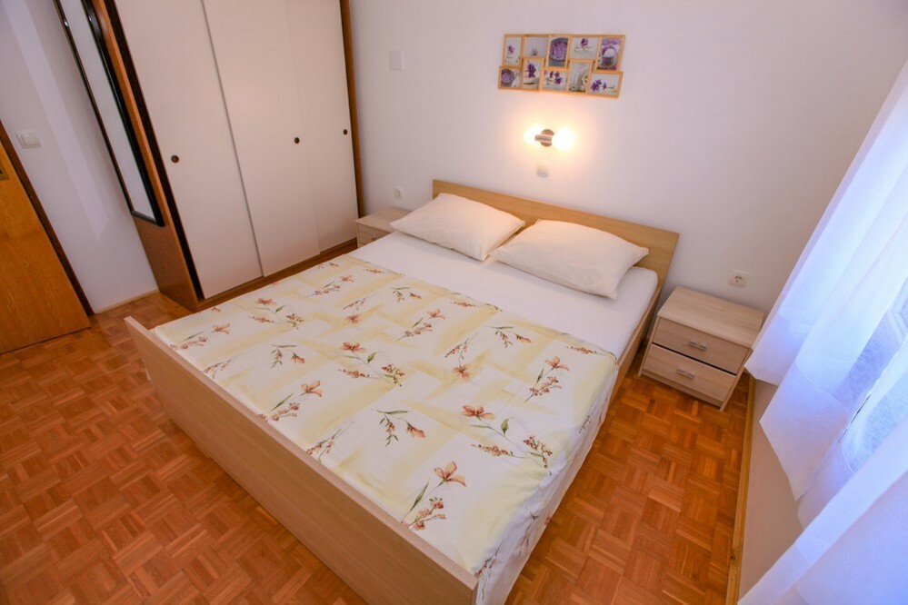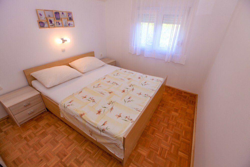 Vybavená kuchyňka (plynová a el. deska, lednička s mrazákem), obývací pokoj s TV a vstupem na prostornou zastřešenou terasu s výhledem na moře, 2 ložnice (2/2), koupelna se sprchovým koutem a WC, klimatizace, gril. Parkování u objektu, domácí zvíře ne. WI-Fi připojení k internetu.