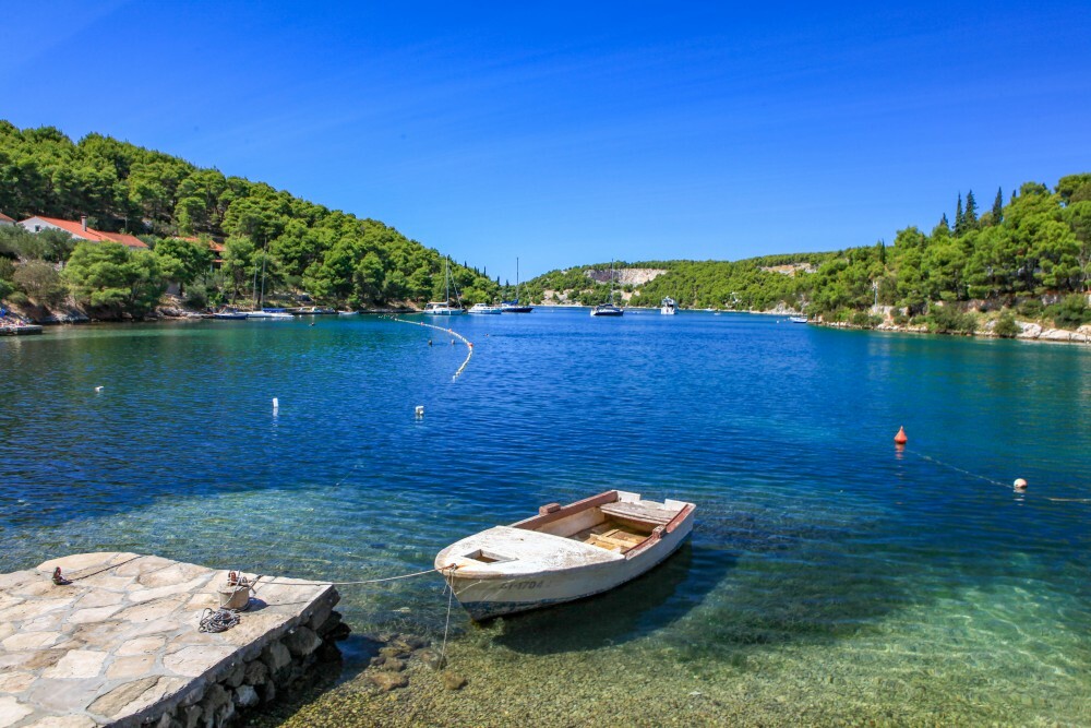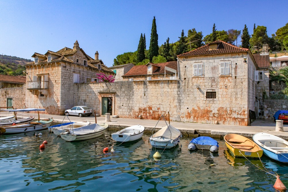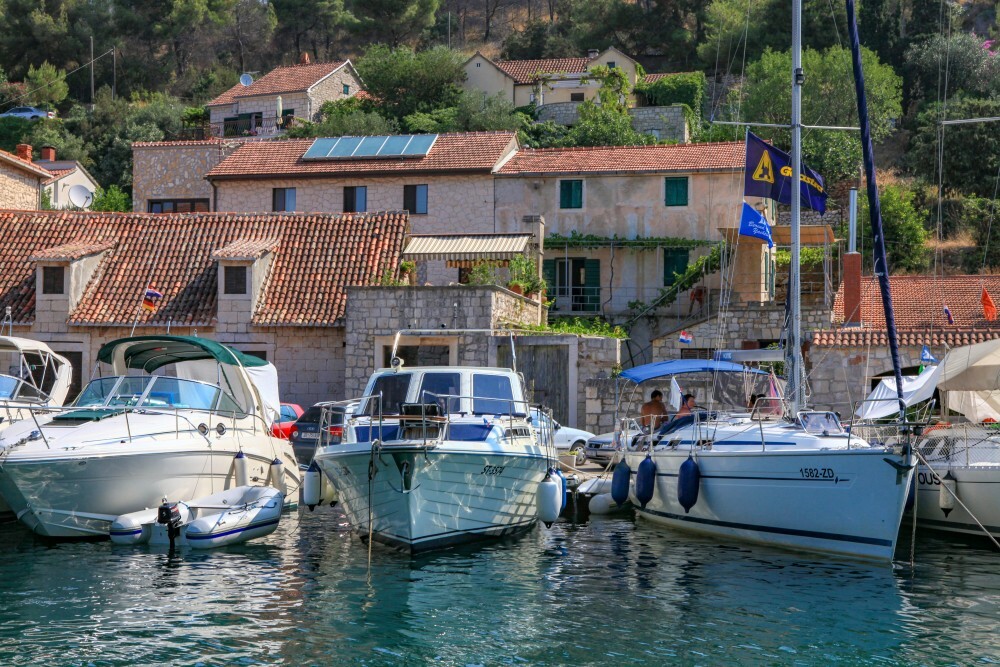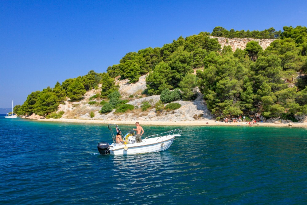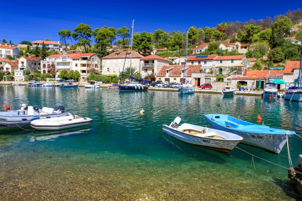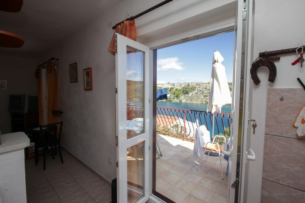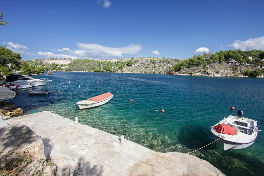 Velmi pěkný apartmán se zastřešenou terasou s výhledem na zátoku, 400 m od oblázkové pláže na ostrově Brač v Chorvatsku.