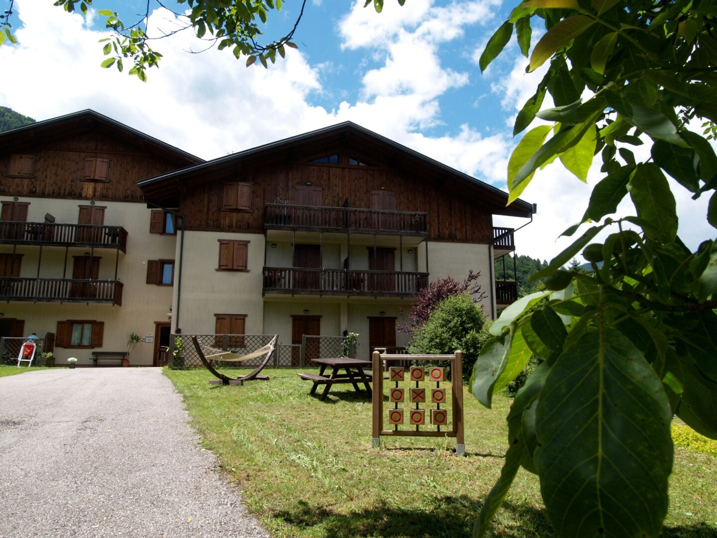 Pěkně vybavený apartmán v přízemí apartmánového domu s venkovním zapuštěným bazénem, na klidném a slunném místě s výhledem na hory, 3 km od jezera Lago di Ledro a 20 km od jezera Lago di Garda, v provincii Trentino v Itálii.