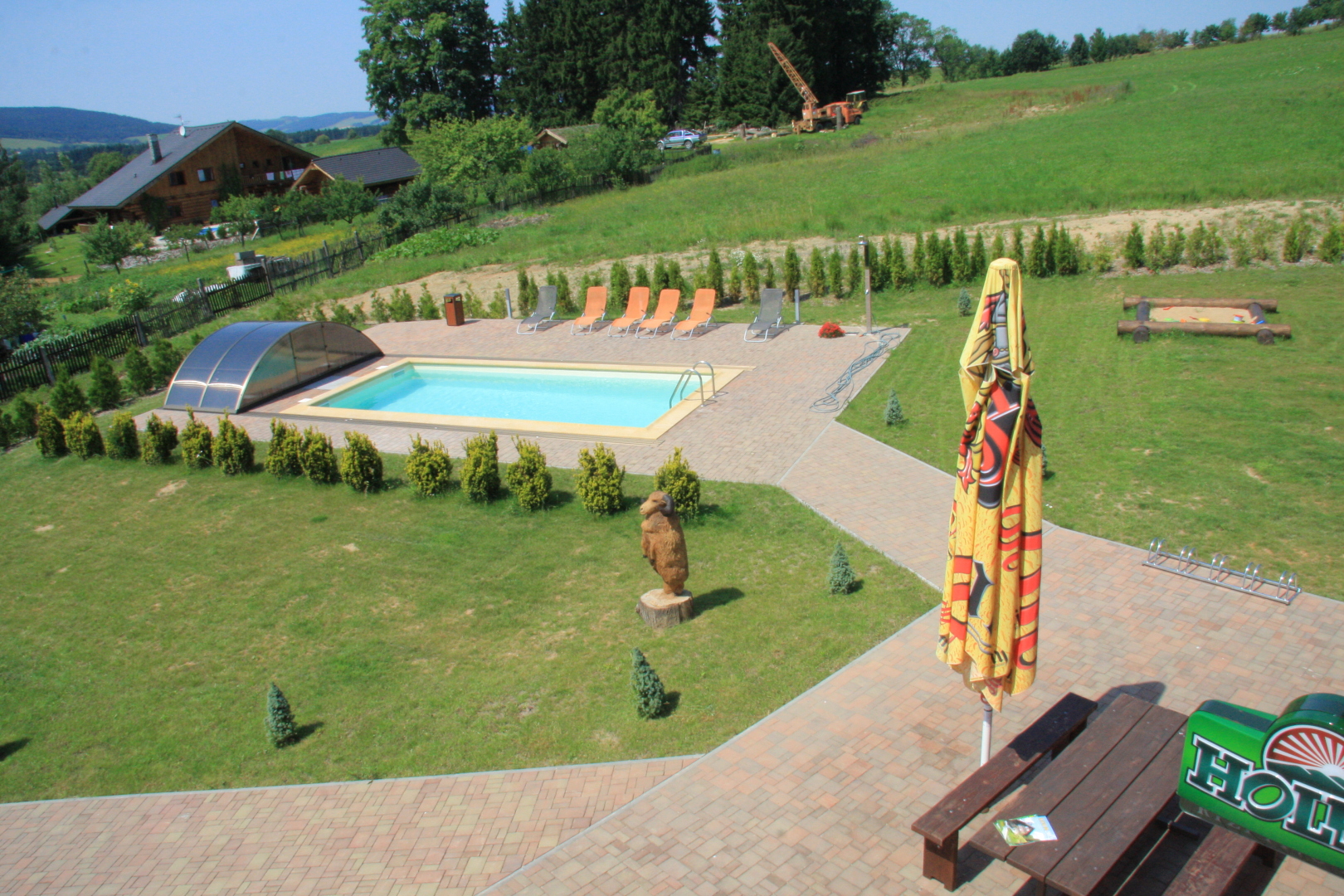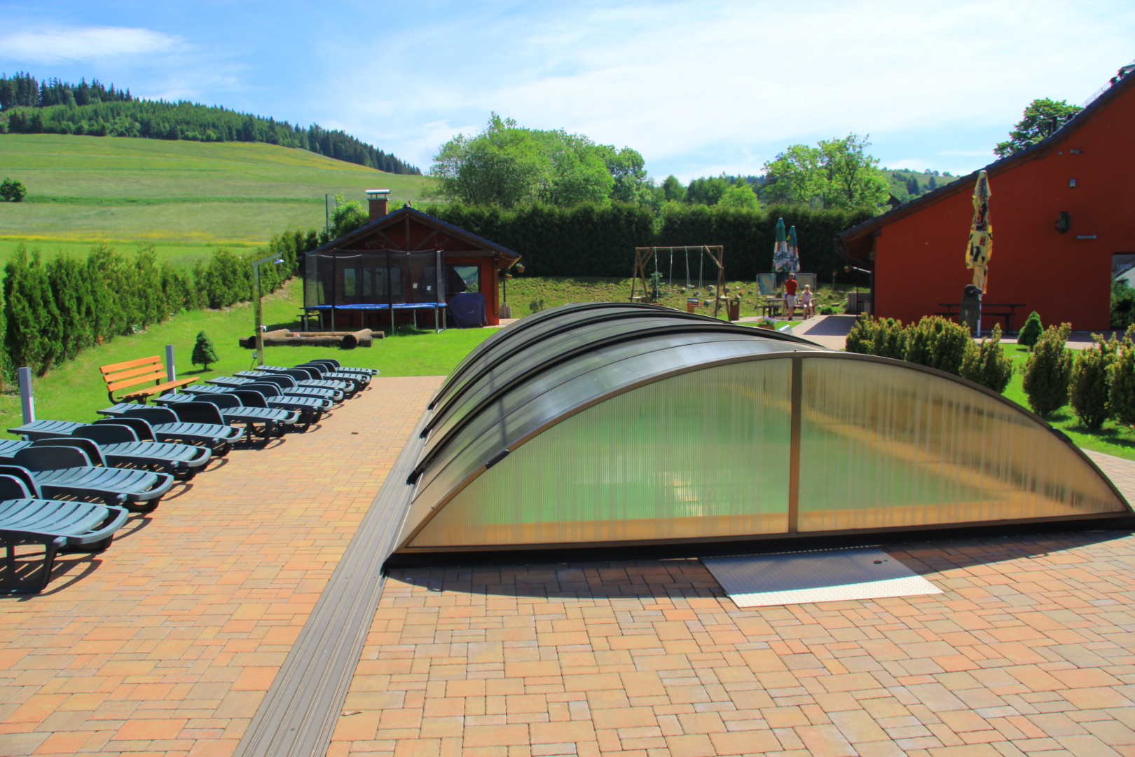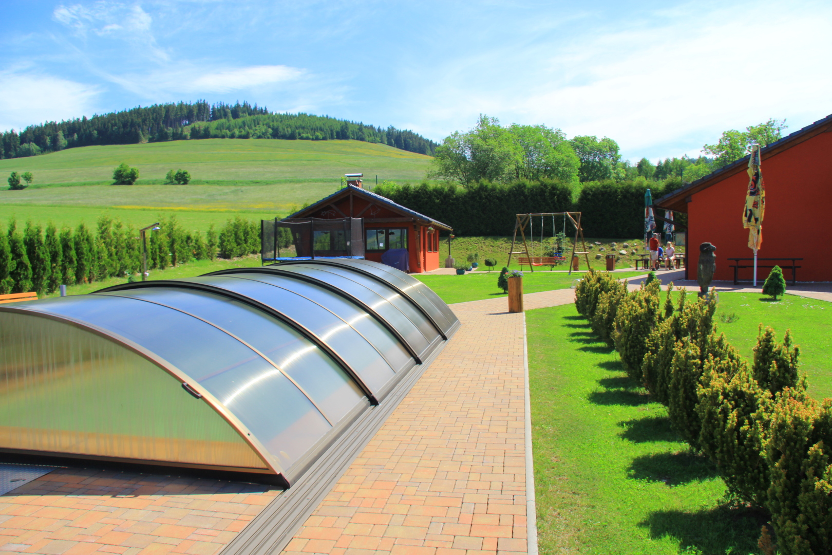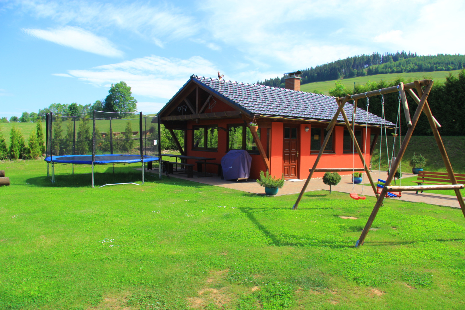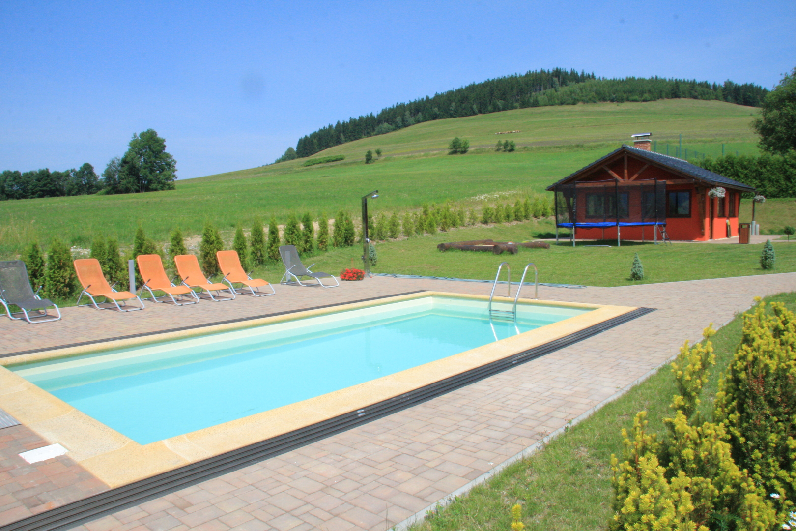 Luksusowe, w pełni wyjątkowo atrakcyjny dom jednorodzinny z odkrytym basenem i sauną objęty w spokojnej miejscowości Šanov, 200 m od wyciągu narciarskiego oraz 2 km od królika na styku Gór Orlickich i góry.